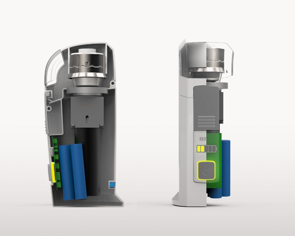 Severo from IMS Medical is the global market leader in professional pill grinding equipment, used by healthcare professionals to help patients with swallowing difficulties or dementia take their medication safely. As homecare expanded rapidly, nurses needed a portable version of the trusted Severo grinder; something compact, reliable and easy to carry between patients. The existing tabletop machine, designed a decade earlier, was too large, too heavy and visually outdated. ManGo was asked to develop a new, handheld solution that delivered the same professional grinding performance in a far more mobile form.